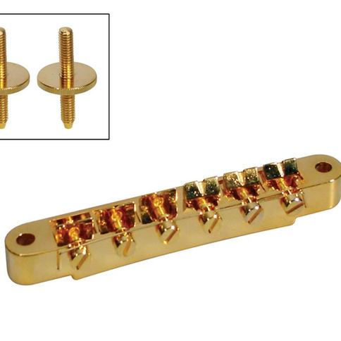 bridge for e-guitar, tune-o-matic, stud spacing 74,0mm, stud diam 4,0mm, gold